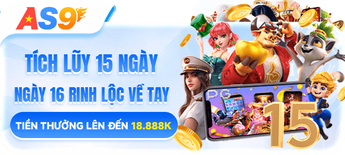 Tích lũy rinh lộc đang là sự kiện làm mưa làm gió tại 4as9 , người chơi không cần chơi game, chỉ cần đăng nhập và điểm danh đầy đủ là có thể rinh ngay số tiền 18,888K tạ nhà cái, ngoài ra mỗi ngày mới, mỗi người chơi nhận thêm 1 vòng quay may mắn có giá trị từ 88k-188888K.